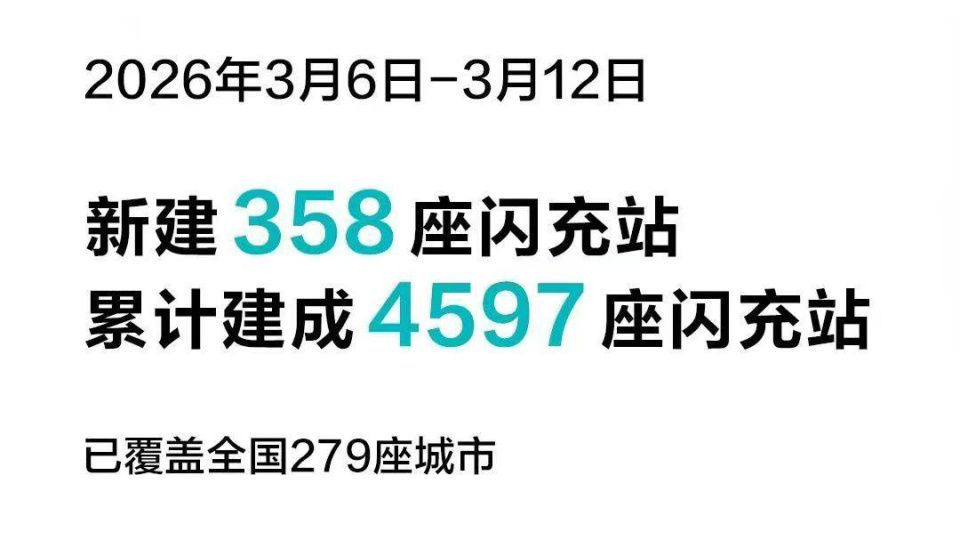 再从数量的角度上看,3月5日发布会当天,比亚迪官宣,已累计建成 4239座兆瓦闪充站。3月13日,比亚迪官方通报建设进度,3月6–12日新增 358座,覆盖279城,日均新增约为51座。