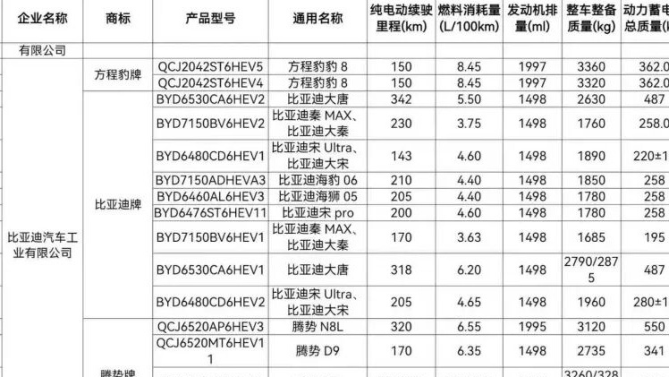 也就是说,有2个比较大的变化,一是,其插混车型相比老款,纯电续航至少都是翻倍增长,二则是,可以确定比亚迪大唐、腾势D9的插混版本会配备二代刀片电池以及兆瓦闪充,它们的续航就直接拉高到了和问界M8、问界M9这种当红炸子鸡车型相同的水准。