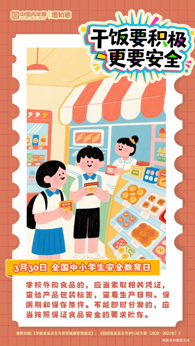 校门口的“五毛食品”健康吗?幼儿园食堂能不能加工野蘑菇?每年3月份最后一周的星期一,是全国中小学生“安全教育日”。今天的课,一起学习食品安全知识,做到干饭要积极更要安全。